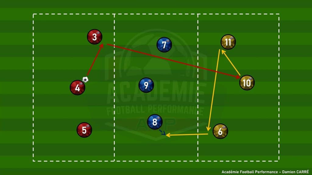 2 appuis + 3 contre 3 + 3 sur 3 zones avec 4 mini-buts