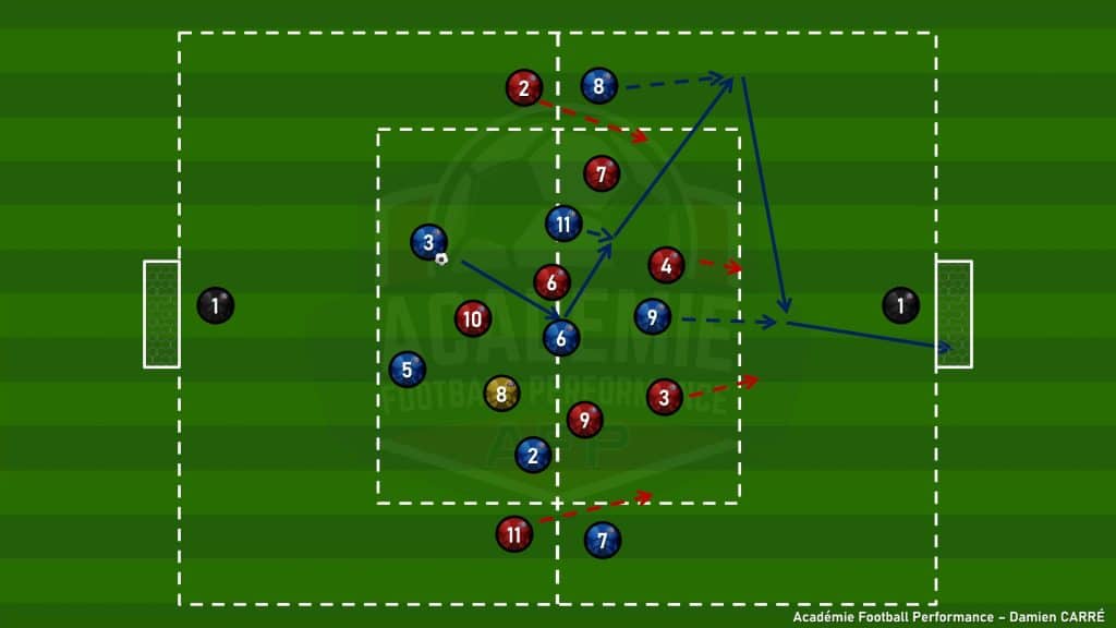 6 contre 6 + 2×2 joueurs de couloir + 1 joker + 2 gardiens avec une zone centrale